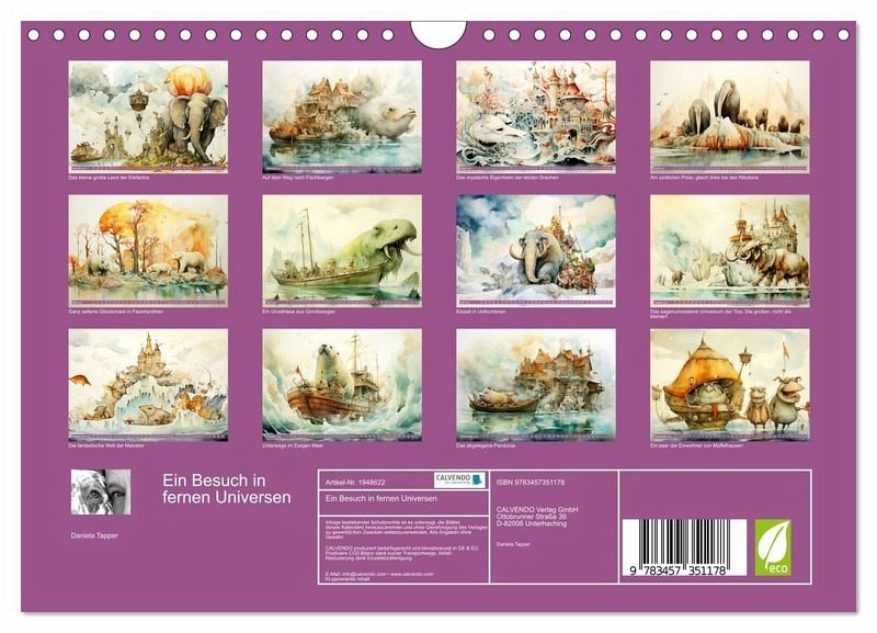 QUALITÄT - Hochwertiger Fotokalender mit 12 wunderschönen Motiven auf lichtbeständigem Bilderdruckpapier, robuste Spiralbindung mit Aufhängebügel.NACHHALTIG - deutliche Abfallreduzierung durch bedarfsgerechte Einzelstückfertigung, umweltfreundliches FSC-zertifiziertes Papier, Produktion in Deutschland, klimabewusste Logistik.PERFEKTES GESCHENK - Kalender für Freunde und Familie, für Kinder und Erwachsene, jung und alt, zu Weihnachten, Geburtstag oder zwischendurch.VIELFALT - Bildkalender in verschiedenen Formaten, z.B. DIN A5, DIN A4, DIN A3 sowie DIN A2. Ob Naturmotiv, Gemälde oder Fotos, ideal für ein persönliches Wohlfühlambiente.Mit leuchtenden Farben in ferne Welten von Autor(in): Daniela Tapper