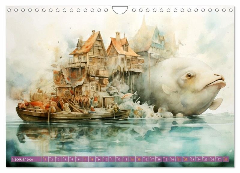 Dieser Kalender zeigt Ihnen und Ihren Kindern, Dank einer KI, atemberaubende Illustrationen von fantastischen Landschaften, magischen Kreaturen und faszinierenden Abenteuern. Lassen Sie Ihrer Fantasie freien Lauf und entdecken Sie ferne Welten und Kreativität! Leuchtende Farben und sanfte Aquarellstriche werden Sie bezaubern - Also, machen Sie sich bereit für eine Reise ins Reich der Träume!