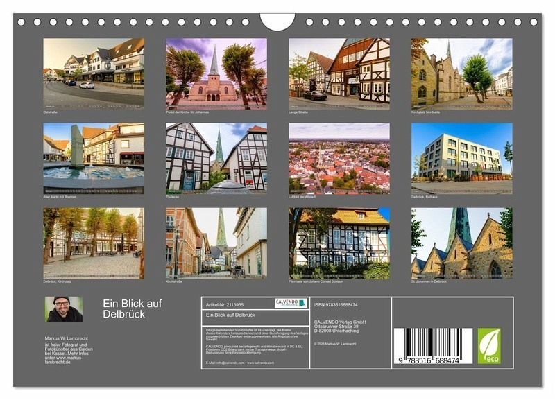 QUALITÄT - Hochwertiger Fotokalender mit 12 wunderschönen Motiven auf lichtbeständigem Bilderdruckpapier, robuste Spiralbindung mit Aufhängebügel.NACHHALTIG - deutliche Abfallreduzierung durch bedarfsgerechte Einzelstückfertigung, umweltfreundliches FSC-zertifiziertes Papier, Produktion in Deutschland, klimabewusste Logistik.PERFEKTES GESCHENK - Kalender für Freunde und Familie, für Kinder und Erwachsene, jung und alt, zu Weihnachten, Geburtstag oder zwischendurch.VIELFALT - Bildkalender in verschiedenen Formaten, z.B. DIN A5, DIN A4, DIN A3 sowie DIN A2. Ob Naturmotiv, Gemälde oder Fotos, ideal für ein persönliches Wohlfühlambiente.Delbrück - rund um den schiefen Kirchturm von Autor(in): Markus W. Lambrecht