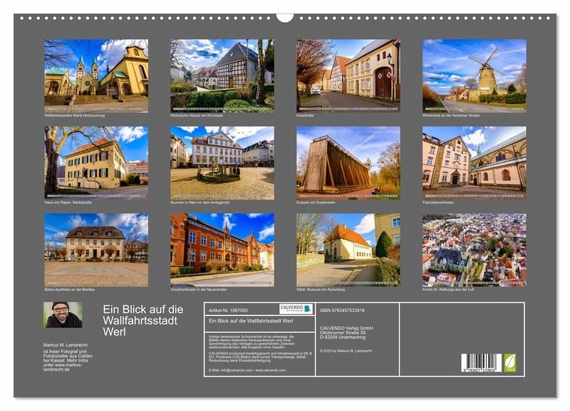 QUALITÄT - Hochwertiger Fotokalender mit 12 wunderschönen Motiven auf lichtbeständigem Bilderdruckpapier, robuste Spiralbindung mit Aufhängebügel.NACHHALTIG - deutliche Abfallreduzierung durch bedarfsgerechte Einzelstückfertigung, umweltfreundliches FSC-zertifiziertes Papier, Produktion in Deutschland, klimabewusste Logistik.PERFEKTES GESCHENK - Kalender für Freunde und Familie, für Kinder und Erwachsene, jung und alt, zu Weihnachten, Geburtstag oder zwischendurch.VIELFALT - Bildkalender in verschiedenen Formaten, z.B. DIN A5, DIN A4, DIN A3 sowie DIN A2. Ob Naturmotiv, Gemälde oder Fotos, ideal für ein persönliches Wohlfühlambiente.Die alte Hansestadt Werl in Westfalen von Autor(in): Markus W. Lambrecht