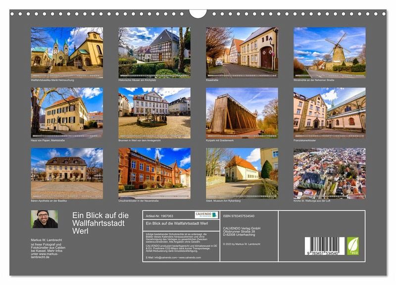 QUALITÄT - Hochwertiger Fotokalender mit 12 wunderschönen Motiven auf lichtbeständigem Bilderdruckpapier, robuste Spiralbindung mit Aufhängebügel.NACHHALTIG - deutliche Abfallreduzierung durch bedarfsgerechte Einzelstückfertigung, umweltfreundliches FSC-zertifiziertes Papier, Produktion in Deutschland, klimabewusste Logistik.PERFEKTES GESCHENK - Kalender für Freunde und Familie, für Kinder und Erwachsene, jung und alt, zu Weihnachten, Geburtstag oder zwischendurch.VIELFALT - Bildkalender in verschiedenen Formaten, z.B. DIN A5, DIN A4, DIN A3 sowie DIN A2. Ob Naturmotiv, Gemälde oder Fotos, ideal für ein persönliches Wohlfühlambiente.Die alte Hansestadt Werl in Westfalen von Autor(in): Markus W. Lambrecht