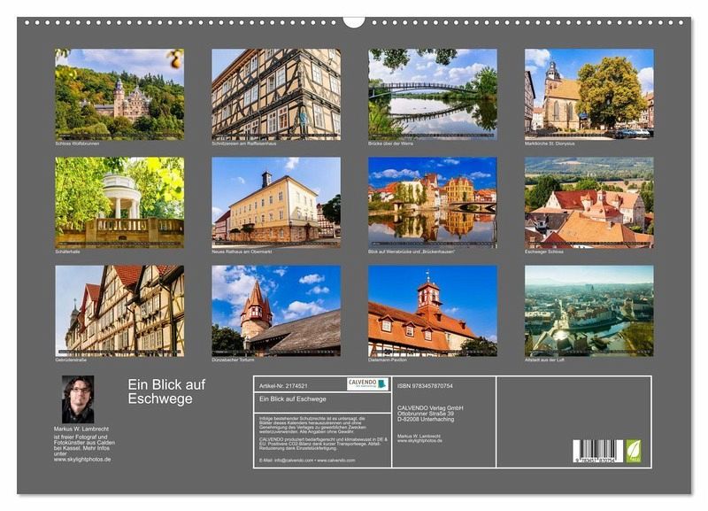 QUALITÄT - Hochwertiger Fotokalender mit 12 wunderschönen Motiven auf lichtbeständigem Bilderdruckpapier, robuste Spiralbindung mit Aufhängebügel.NACHHALTIG - deutliche Abfallreduzierung durch bedarfsgerechte Einzelstückfertigung, umweltfreundliches FSC-zertifiziertes Papier, Produktion in Deutschland, klimabewusste Logistik.PERFEKTES GESCHENK - Kalender für Freunde und Familie, für Kinder und Erwachsene, jung und alt, zu Weihnachten, Geburtstag oder zwischendurch.VIELFALT - Bildkalender in verschiedenen Formaten, z.B. DIN A5, DIN A4, DIN A3 sowie DIN A2. Ob Naturmotiv, Gemälde oder Fotos, ideal für ein persönliches Wohlfühlambiente.Eschwege - Landgräfliche Stadt an der Werra von Autor(in): Markus W. Lambrecht