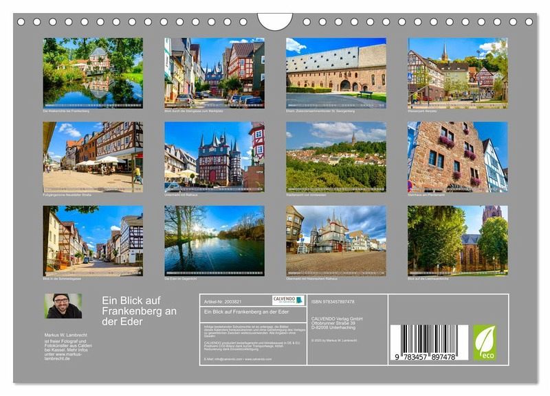 QUALITÄT - Hochwertiger Fotokalender mit 12 wunderschönen Motiven auf lichtbeständigem Bilderdruckpapier, robuste Spiralbindung mit Aufhängebügel.NACHHALTIG - deutliche Abfallreduzierung durch bedarfsgerechte Einzelstückfertigung, umweltfreundliches FSC-zertifiziertes Papier, Produktion in Deutschland, klimabewusste Logistik.PERFEKTES GESCHENK - Kalender für Freunde und Familie, für Kinder und Erwachsene, jung und alt, zu Weihnachten, Geburtstag oder zwischendurch.VIELFALT - Bildkalender in verschiedenen Formaten, z.B. DIN A5, DIN A4, DIN A3 sowie DIN A2. Ob Naturmotiv, Gemälde oder Fotos, ideal für ein persönliches Wohlfühlambiente.Frankenberg - die Fachwerkperle an der Eder von Autor(in): Markus W. Lambrecht