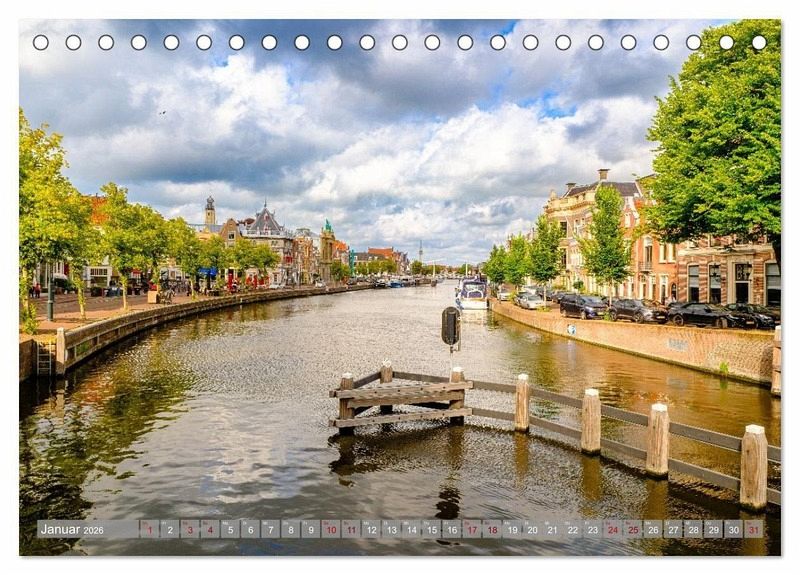 Der Fotokalender über Haarlem zeigt die Stadt in ihrer ganzen Pracht: Die majestätische Grote Kerk im Sonnenlicht, das historische Stadhuis im Gegenlicht, die ikonische Windmühle De Adriaan am Wasser und stimmungsvolle Grachten mit Spiegelungen der Altstadt. Ein visuelles Erlebnis für jeden Monat!