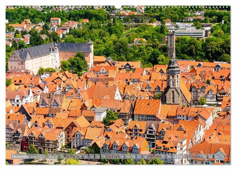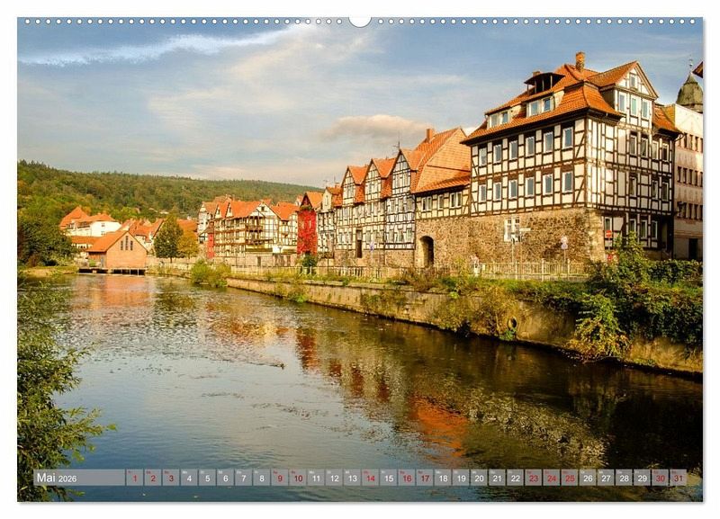 In Hannoversch Münden, gelegen im südlichen Niedersachsen nahe Hessen, fließen Fulda und Werra zum Fluß Weser zusammen. Das Welfenschloss Münden an der Werra zeugt noch heute von der Glanz der Weserrenaissance genau wie zahlreiche historische Bauwerke in der Stadt. Unser Kalender nimmt Sie mit auf eine fotografische Reise durch diese wunderschöne Fachwerkstadt.