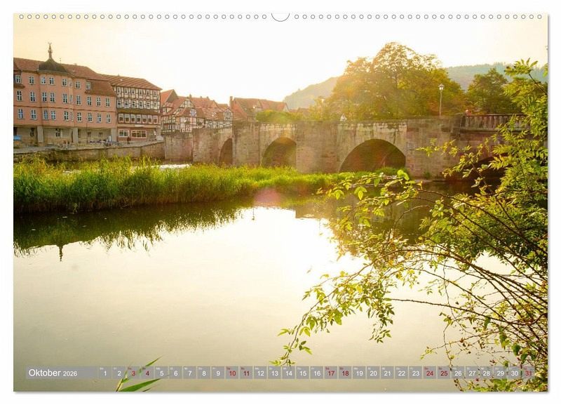 In Hannoversch Münden, gelegen im südlichen Niedersachsen nahe Hessen, fließen Fulda und Werra zum Fluß Weser zusammen. Das Welfenschloss Münden an der Werra zeugt noch heute von der Glanz der Weserrenaissance genau wie zahlreiche historische Bauwerke in der Stadt. Unser Kalender nimmt Sie mit auf eine fotografische Reise durch diese wunderschöne Fachwerkstadt.
