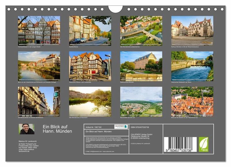 QUALITÄT - Hochwertiger Fotokalender mit 12 wunderschönen Motiven auf lichtbeständigem Bilderdruckpapier, robuste Spiralbindung mit Aufhängebügel.NACHHALTIG - deutliche Abfallreduzierung durch bedarfsgerechte Einzelstückfertigung, umweltfreundliches FSC-zertifiziertes Papier, Produktion in Deutschland, klimabewusste Logistik.PERFEKTES GESCHENK - Kalender für Freunde und Familie, fürKinder und Erwachsene, jung und alt, zu Weihnachten, Geburtstag oder zwischendurch.VIELFALT - Bildkalender in verschiedenen Formaten, z.B. DIN A5, DIN A4, DIN A3 sowie DIN A2. Ob Naturmotiv, Gemälde oder Fotos, ideal für ein persönliches Wohlfühlambiente.Hannoversch Münden - Die Drei-Flüsse-Stadt von Autor(in): Markus W. Lambrecht