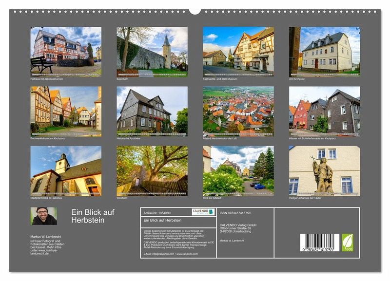 PREMIUM-LINIE - Brillanter Fotokalender mit 12 wunderschönen Motiven, Kunstdruck in Hochglanz in Museumsqualität.QUALITÄT - edle Materialien, stabile Rückwand mit 2 innovativen Einstecktaschen für eine optimale Präsentation an der Wand.NACHHALTIG - deutliche Abfallreduzierung durch bedarfsgerechte Einzelstückfertigung, umweltfreundliches FSC-zertifiziertes Papier, Produktion in Deutschland, klimabewusste Logistik.PERFEKTES GESCHENK - Kalender für Freunde und Familie, für Kinder und Erwachsene, jung und alt, zu Weihnachten, Geburtstag oder zwischendurch.Herbstein, Luftkurort und Heilbad im Vogelsbergkreis von Autor(in): Markus W. Lambrecht