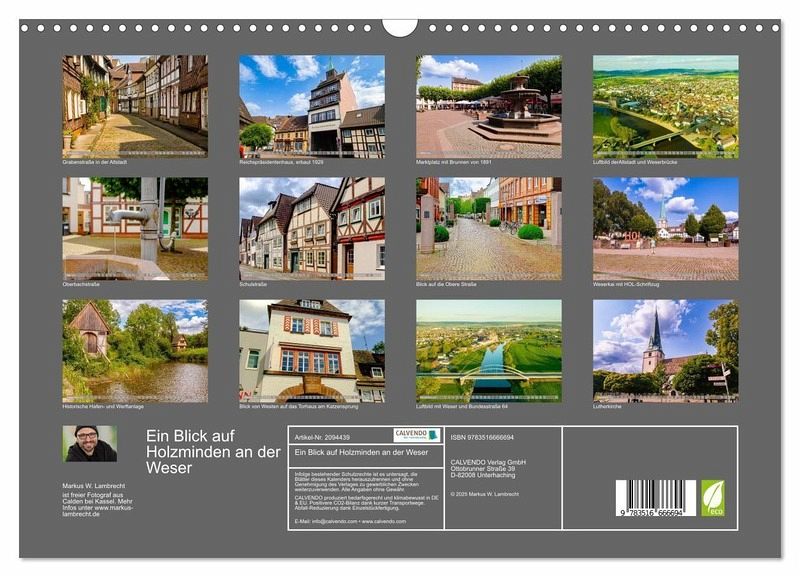 QUALITÄT - Hochwertiger Fotokalender mit 12 wunderschönen Motiven auf lichtbeständigem Bilderdruckpapier, robuste Spiralbindung mit Aufhängebügel.NACHHALTIG - deutliche Abfallreduzierung durch bedarfsgerechte Einzelstückfertigung, umweltfreundliches FSC-zertifiziertes Papier, Produktion in Deutschland, klimabewusste Logistik.PERFEKTES GESCHENK - Kalender für Freunde und Familie, für Kinder und Erwachsene, jung und alt, zu Weihnachten, Geburtstag oder zwischendurch.VIELFALT - Bildkalender in verschiedenen Formaten, z.B. DIN A5, DIN A4, DINA3 sowie DIN A2. Ob Naturmotiv, Gemälde oder Fotos, ideal für ein persönliches Wohlfühlambiente.Holzminden - Stadt der Düfte und Aromen von Autor(in): Markus W. Lambrecht