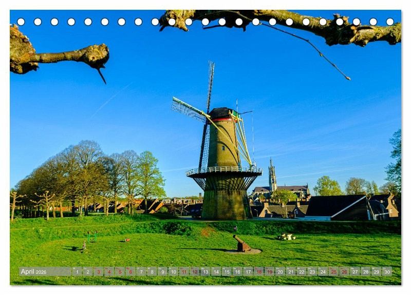 Nur rund 22 km von Antwerpen entfernt nahe der belgischen Grenze, liegt die historische Stadt Hulst. Ihre drei Kilometer langen Festungswälle stammen aus der Zeit des Achtzigjährigen Krieges und sind noch heute sehr gut erhalten. Zu den Sehenswürdigkeiten der Stadt gehört ebenfalls die St.-Willibrordus-Basilika, die in den Jahren 1200 bis 1534 gebaut wurde. Entdecken Sie mit diesem Kalender die pittoreske historische Altstadt von Hulst!