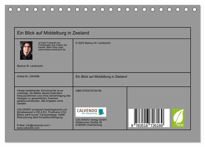 QUALITÄT - Hochwertiger Fotokalender mit 12 wunderschönen Motiven auf lichtbeständigem Bilderdruckpapier, robuste Spiralbindung.NACHHALTIG - deutliche Abfallreduzierung durch bedarfsgerechte Einzelstückfertigung, umweltfreundliches FSC-zertifiziertes Papier, Produktion in Deutschland, klimabewusste Logistik.PERFEKTES GESCHENK - Kalender für Freunde und Familie, für Kinder und Erwachsene, jung und alt, zu Weihnachten, Geburtstag oder zwischendurch.VIELFALT - Bildkalender in verschiedenen Formaten, z.B. DIN A5, DIN A4, DIN A3 sowie DIN A2. Ob Naturmotiv, Gemälde oder Fotos, ideal für ein persönliches Wohlfühlambiente.Middelburg - Hauptstadt der Provinz Zeeland von Autor(in): Markus W. Lambrecht