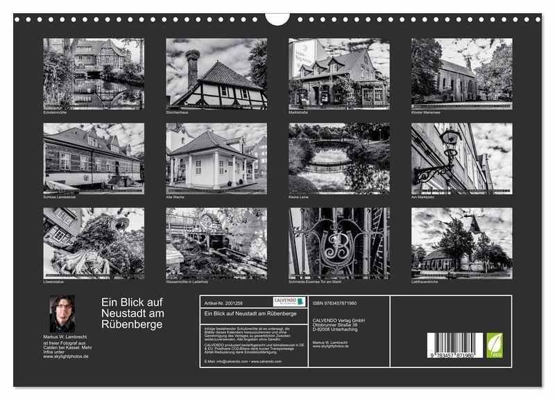QUALITÄT - Hochwertiger Fotokalender mit 12 wunderschönen Motiven auf lichtbeständigem Bilderdruckpapier, robuste Spiralbindung mit Aufhängebügel.NACHHALTIG - deutliche Abfallreduzierung durch bedarfsgerechte Einzelstückfertigung, umweltfreundliches FSC-zertifiziertes Papier, Produktion in Deutschland, klimabewusste Logistik.PERFEKTES GESCHENK - Kalender für Freunde und Familie, für Kinder und Erwachsene, jung und alt, zu Weihnachten, Geburtstag oder zwischendurch.VIELFALT - Bildkalender in verschiedenen Formaten, z.B. DIN A5, DIN A4, DIN A3 sowie DIN A2. Ob Naturmotiv, Gemälde oder Fotos, ideal für ein persönliches Wohlfühlambiente.Ein ungewohnter Blick auf Neustad a.R. in harten Schwarz-Weiß-Bildern. von Autor(in): Markus W. Lambrecht