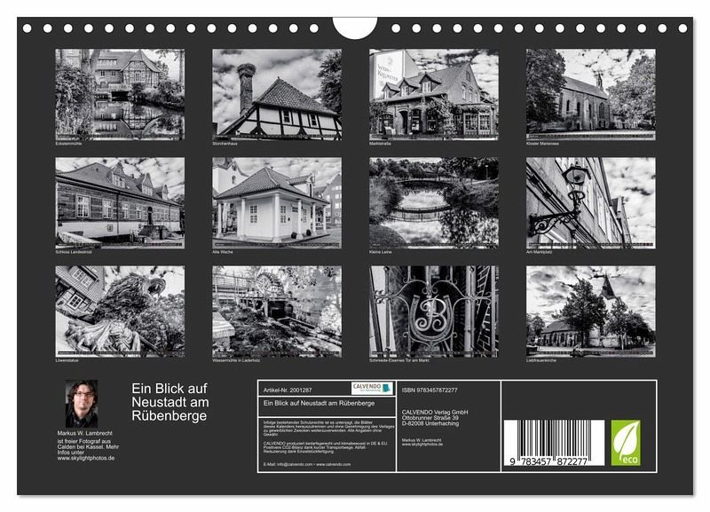 QUALITÄT - Hochwertiger Fotokalender mit 12 wunderschönen Motiven auf lichtbeständigem Bilderdruckpapier, robuste Spiralbindung mit Aufhängebügel.NACHHALTIG - deutliche Abfallreduzierung durch bedarfsgerechte Einzelstückfertigung, umweltfreundliches FSC-zertifiziertes Papier, Produktion in Deutschland, klimabewusste Logistik.PERFEKTES GESCHENK - Kalender für Freunde und Familie, für Kinder und Erwachsene, jung und alt, zu Weihnachten, Geburtstag oder zwischendurch.VIELFALT - Bildkalender in verschiedenen Formaten, z.B. DIN A5, DIN A4, DIN A3 sowie DIN A2. Ob Naturmotiv, Gemälde oder Fotos, ideal für ein persönliches Wohlfühlambiente.Ein ungewohnter Blick auf Neustad a.R. in harten Schwarz-Weiß-Bildern. von Autor(in): Markus W. Lambrecht