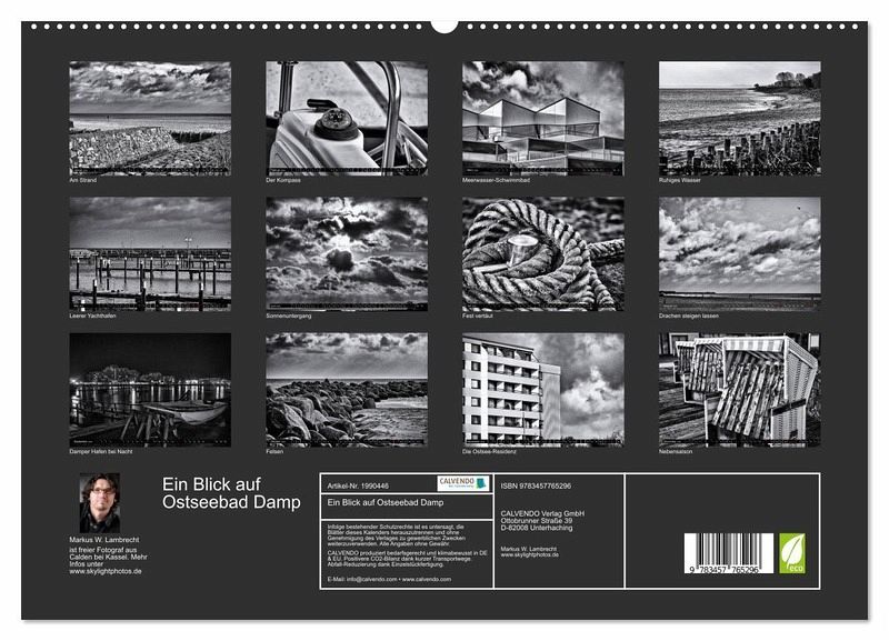 PREMIUM-LINIE - Brillanter Fotokalender mit 12 wunderschönen Motiven, Kunstdruck in Hochglanz in Museumsqualität.QUALITÄT - edle Materialien, stabile Rückwand mit 2 innovativen Einstecktaschen für eine optimale Präsentation an der Wand.NACHHALTIG - deutliche Abfallreduzierung durch bedarfsgerechte Einzelstückfertigung, umweltfreundliches FSC-zertifiziertes Papier, Produktion in Deutschland, klimabewusste Logistik.PERFEKTES GESCHENK - Kalender für Freunde und Familie, für Kinder und Erwachsene, jung und alt, zu Weihnachten, Geburtstag oder zwischendurch.Ein ungewohnter Blick auf Damp an der Ostsee in harten Schwarz-Weiß-Bildern. von Autor(in): Markus W. Lambrecht