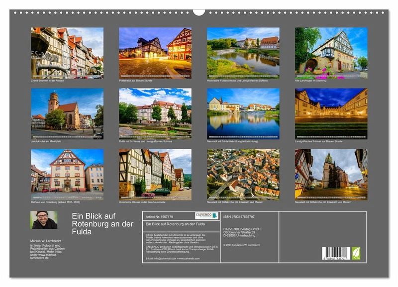 QUALITÄT - Hochwertiger Fotokalender mit 12 wunderschönen Motiven auf lichtbeständigem Bilderdruckpapier, robuste Spiralbindung mit Aufhängebügel.NACHHALTIG - deutliche Abfallreduzierung durch bedarfsgerechte Einzelstückfertigung, umweltfreundliches FSC-zertifiziertes Papier, Produktion in Deutschland, klimabewusste Logistik.PERFEKTES GESCHENK - Kalender für Freunde und Familie, für Kinder und Erwachsene, jung und alt, zu Weihnachten, Geburtstag oder zwischendurch.VIELFALT - Bildkalender in verschiedenen Formaten, z.B. DIN A5, DIN A4, DIN A3 sowie DIN A2. Ob Naturmotiv, Gemälde oder Fotos, ideal für ein persönliches Wohlfühlambiente.Rotenburg an der Fulda - der Sommersitz der Landgrafen von Autor(in): Markus W. Lambrecht