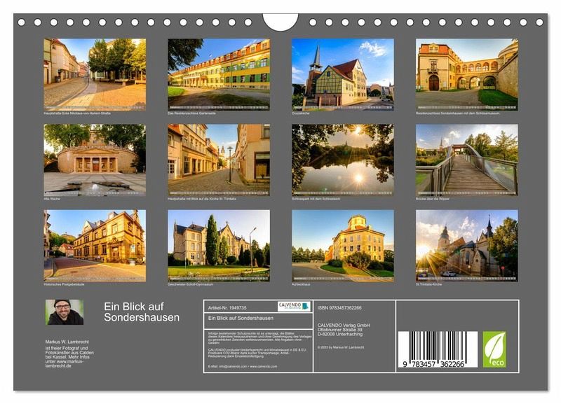 QUALITÄT - Hochwertiger Fotokalender mit 12 wunderschönen Motiven auf lichtbeständigem Bilderdruckpapier, robuste Spiralbindung mit Aufhängebügel.NACHHALTIG - deutliche Abfallreduzierung durch bedarfsgerechte Einzelstückfertigung, umweltfreundliches FSC-zertifiziertes Papier, Produktion in Deutschland, klimabewusste Logistik.PERFEKTES GESCHENK - Kalender für Freunde und Familie, für Kinder und Erwachsene, jung und alt, zu Weihnachten, Geburtstag oder zwischendurch.VIELFALT - Bildkalender in verschiedenen Formaten, z.B. DIN A5, DIN A4, DIN A3 sowie DIN A2. Ob Naturmotiv, Gemälde oder Fotos, ideal für ein persönliches Wohlfühlambiente.Sondershausen, die Musik- und Bergstadt in Thüringen von Autor(in): Markus W. Lambrecht