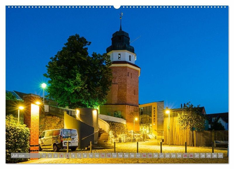 Juli: Historisches Schloss und Rathaus in Ueckermünde zur Blauen Stunde