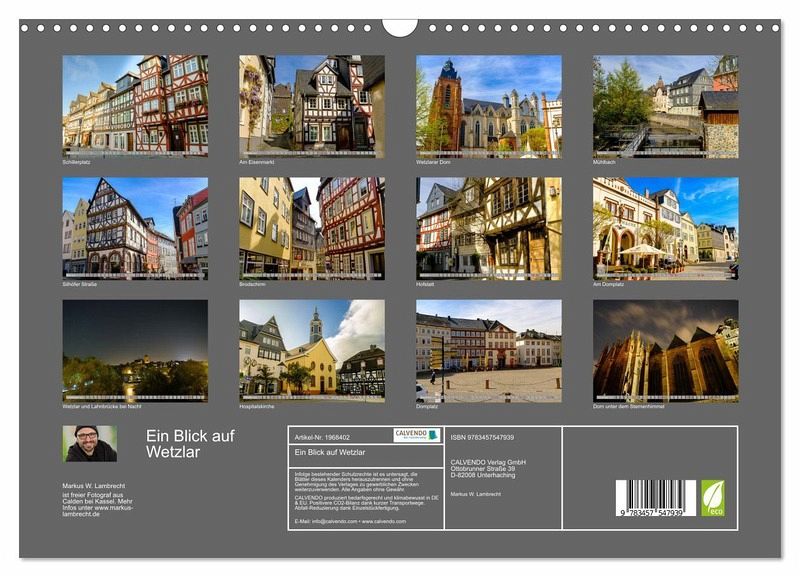 QUALITÄT - Hochwertiger Fotokalender mit 12 wunderschönen Motiven auf lichtbeständigem Bilderdruckpapier, robuste Spiralbindung mit Aufhängebügel.NACHHALTIG - deutliche Abfallreduzierung durch bedarfsgerechte Einzelstückfertigung, umweltfreundliches FSC-zertifiziertes Papier, Produktion in Deutschland, klimabewusste Logistik.PERFEKTES GESCHENK - Kalender für Freunde und Familie, für Kinder und Erwachsene, jung und alt, zu Weihnachten, Geburtstag oder zwischendurch.VIELFALT - Bildkalender in verschiedenen Formaten, z.B. DIN A5, DIN A4, DIN A3 sowie DIN A2. Ob Naturmotiv, Gemälde oder Fotos, ideal für ein persönliches Wohlfühlambiente.Wetzlar, die alte Reichsstadt an der Lahn von Autor(in): Markus W. Lambrecht