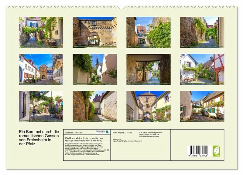 PREMIUM-LINIE - Brillanter Fotokalender mit 12 wunderschönen Motiven, Kunstdruck in Hochglanz in Museumsqualität.QUALITÄT - edle Materialien, stabile Rückwand mit 2 innovativen Einstecktaschen für eine optimale Präsentation an der Wand.NACHHALTIG - deutliche Abfallreduzierung durch bedarfsgerechte Einzelstückfertigung, umweltfreundliches FSC-zertifiziertes Papier, Produktion in Deutschland, klimabewusste Logistik.PERFEKTES GESCHENK - Kalender für Freunde und Familie, für Kinder und Erwachsene, jung und alt, zu Weihnachten, Geburtstag oder zwischendurch.Beim Bummel durch Freinsheim fühlt man sich in eine andere Zeit versetzt, Romantik und Gemütlichkeit, die Seele baumeln lassen von Autor(in): Brigitte Dürr