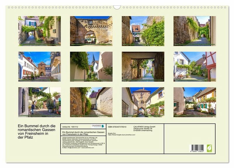 QUALITÄT - Hochwertiger Fotokalender mit 12 wunderschönen Motiven auf lichtbeständigem Bilderdruckpapier, robuste Spiralbindung mit Aufhängebügel.NACHHALTIG - deutliche Abfallreduzierung durch bedarfsgerechte Einzelstückfertigung, umweltfreundliches FSC-zertifiziertes Papier, Produktion in Deutschland, klimabewusste Logistik.PERFEKTES GESCHENK - Kalender für Freunde und Familie, für Kinder und Erwachsene, jung und alt, zu Weihnachten, Geburtstag oder zwischendurch.VIELFALT - Bildkalender in verschiedenen Formaten, z.B. DIN A5, DIN A4, DIN A3 sowie DIN A2. Ob Naturmotiv, Gemälde oder Fotos, ideal für ein persönliches Wohlfühlambiente.Beim Bummel durch Freinsheim fühlt man sich in eine andere Zeit versetzt, Romantik und Gemütlichkeit, die Seele baumeln lassen von Autor(in): Brigitte Dürr