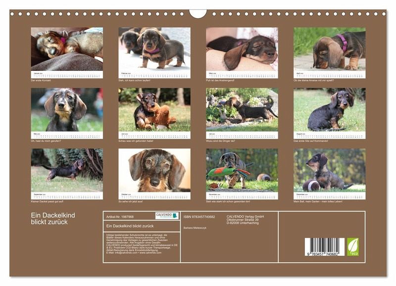 QUALITÄT - Hochwertiger Fotokalender mit 12 wunderschönen Motiven auf lichtbeständigem Bilderdruckpapier, robuste Spiralbindung mit Aufhängebügel.NACHHALTIG - deutliche Abfallreduzierung durch bedarfsgerechte Einzelstückfertigung, umweltfreundliches FSC-zertifiziertes Papier, Produktion in Deutschland, klimabewusste Logistik.PERFEKTES GESCHENK - Kalender für Freunde und Familie, für Kinder und Erwachsene, jung und alt, zu Weihnachten, Geburtstag oder zwischendurch.VIELFALT - Bildkalender in verschiedenen Formaten, z.B. DIN A5, DIN A4, DIN A3 sowie DIN A2. Ob Naturmotiv, Gemälde oder Fotos, ideal für ein persönliches Wohlfühlambiente.Das spannende erste Jahr im Leben eines Rauhaardackel. von Autor(in): Barbara Mielewczyk