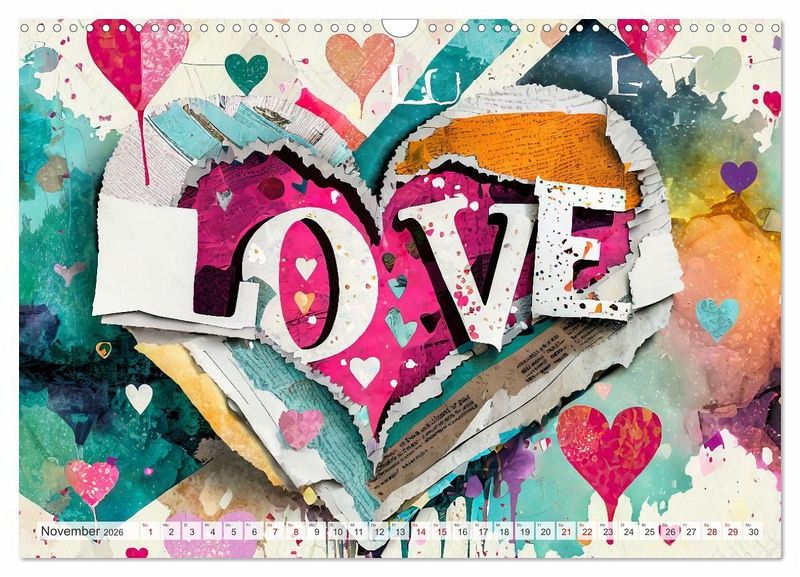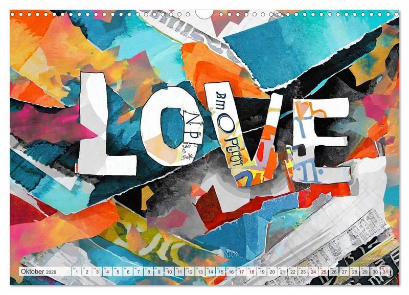 Abstrakte, schöne Kunstwerke aus bunten gerissenen Zeitschriften, manche mit Herz Design, andere mit Farbspritzern und jeden Monat mit dem Wort LOVE. Die kunstvoll und sehr farbenfrohen Bilder hat Marlise Gaudig für sie mit KI generiert. Dieser Kalender ist ein liebevolles Geschenk, das von Herzen kommt, für ganz besondere Menschen. Zum Geburtstag, Muttertag, Vatertag, Hochzeitstag, Verlobung, für die Freundin, den Freund und die ganze Familie.