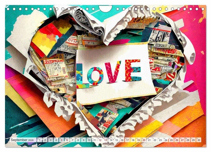 Abstrakte, schöne Kunstwerke aus bunten gerissenen Zeitschriften, manche mit Herz Design, andere mit Farbspritzern und jeden Monat mit dem Wort LOVE. Die kunstvoll und sehr farbenfrohen Bilder hat Marlise Gaudig für sie mit KI generiert. Dieser Kalender ist ein liebevolles Geschenk, das von Herzen kommt, für ganz besondere Menschen. Zum Geburtstag, Muttertag, Vatertag, Hochzeitstag, Verlobung, für die Freundin, den Freund und die ganze Familie.
