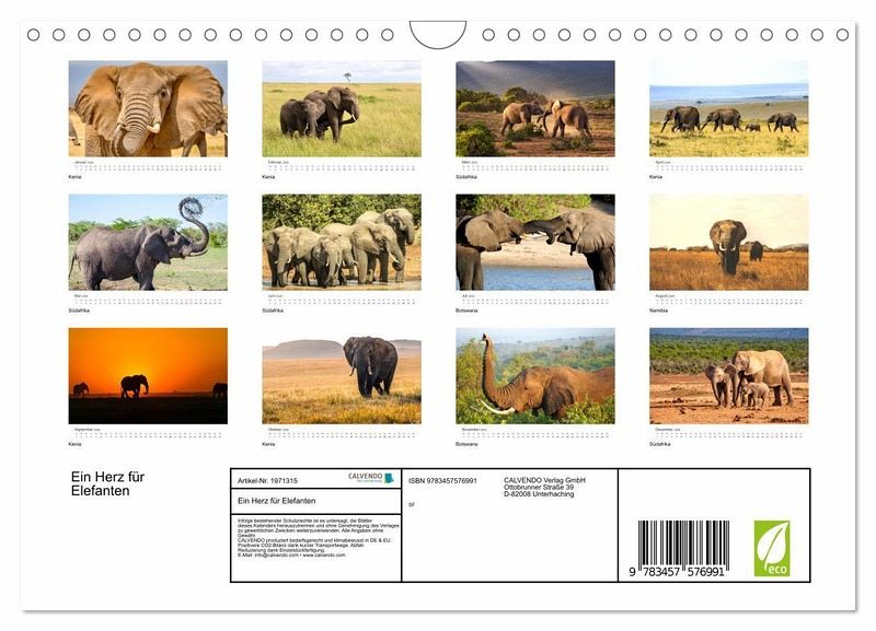 Dieser Kalender zeigt 12 wunderschöne Fotos von Elefanten, den Tieren die jeder liebt. Sie sind imposante Tiere und faszinieren nicht ohne Grund. Lassen Sie sich jedes Monat aufs Neue von einem tollen Motiv überraschen.
