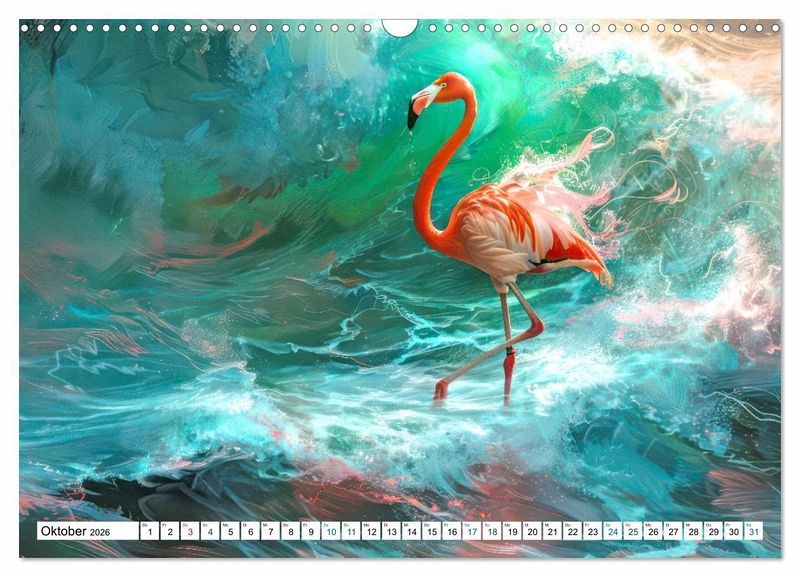 Flamingos fallen auf, ihre Erscheinung in rotem oder rosafarbenem Federkleid entsteht durch ihre Nahrung. Für alle Bewunderer gibt es nun malerische KI-generierte Werke dieser prächtigen Vögel. Ob in der Gruppe, im Flug oder am Starten, wie auch als Nahportrait, Liebhaber von Flamingos kommen hier voll auf ihre Kosten mit diesen ästhetischen Werken. Lassen Sie sich von der Anmut und Schönheit dieser majestätischen Vögel verzaubern. Bringen Sie einen Hauch von Exotik in Ihre vier Wände.