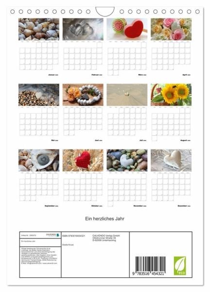 12 Monate mit viel Herz schenkt Ihnen dieser abwechslungsreiche Kalender, der zudem noch genügend Platz für tägliche Notizen bietet.