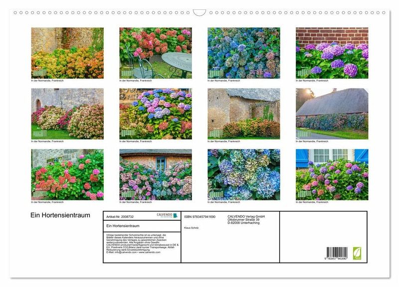 QUALITÄT - Hochwertiger Fotokalender mit 12 wunderschönen Motiven auf lichtbeständigem Bilderdruckpapier, robuste Spiralbindung mit Aufhängebügel.NACHHALTIG - deutliche Abfallreduzierung durch bedarfsgerechte Einzelstückfertigung, umweltfreundliches FSC-zertifiziertes Papier, Produktion in Deutschland, klimabewusste Logistik.PERFEKTES GESCHENK - Kalender für Freunde und Familie, für Kinder und Erwachsene, jung und alt, zu Weihnachten, Geburtstag oder zwischendurch.VIELFALT - Bildkalender in verschiedenen Formaten, z.B. DIN A5, DIN A4, DIN A3 sowie DIN A2. Ob Naturmotiv, Gemälde oder Fotos, ideal für ein persönliches Wohlfühlambiente.Die außergewöhnlichen Hortensienblüten sind die Farbtupfer in der Normandie. von Autor(in): Klaus Scholz