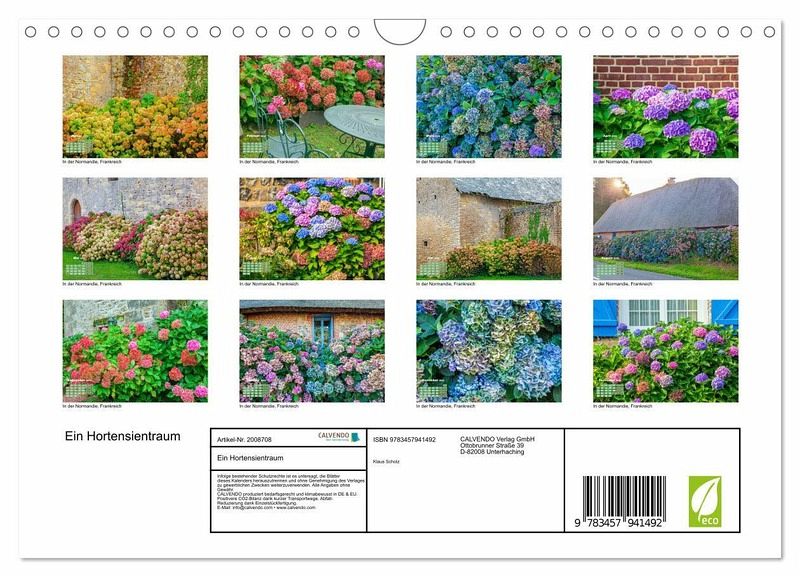 QUALITÄT - Hochwertiger Fotokalender mit 12 wunderschönen Motiven auf lichtbeständigem Bilderdruckpapier, robuste Spiralbindung mit Aufhängebügel.NACHHALTIG - deutliche Abfallreduzierung durch bedarfsgerechte Einzelstückfertigung, umweltfreundliches FSC-zertifiziertes Papier, Produktion in Deutschland, klimabewusste Logistik.PERFEKTES GESCHENK - Kalender für Freunde und Familie, für Kinder und Erwachsene, jung und alt, zu Weihnachten, Geburtstag oder zwischendurch.VIELFALT - Bildkalender in verschiedenen Formaten, z.B. DIN A5, DIN A4, DIN A3 sowie DIN A2. Ob Naturmotiv, Gemälde oder Fotos, ideal für ein persönliches Wohlfühlambiente.Die außergewöhnlichen Hortensienblüten sind die Farbtupfer in der Normandie. von Autor(in): Klaus Scholz