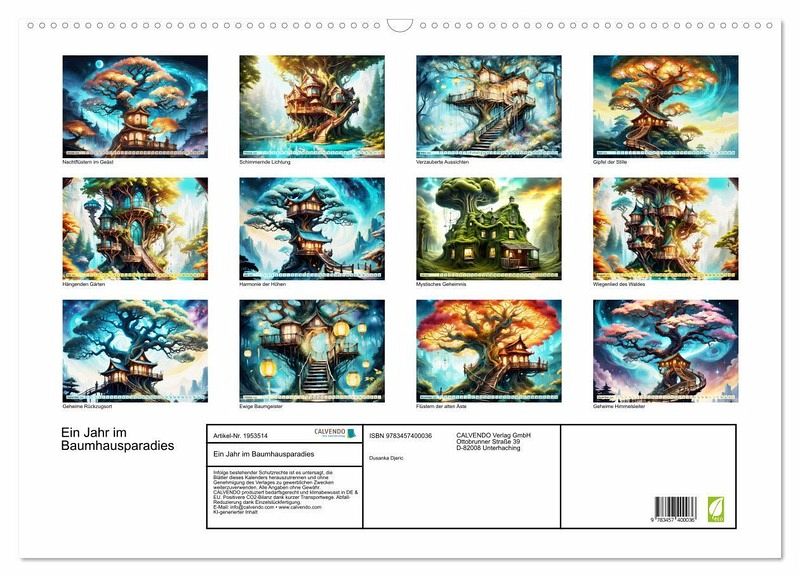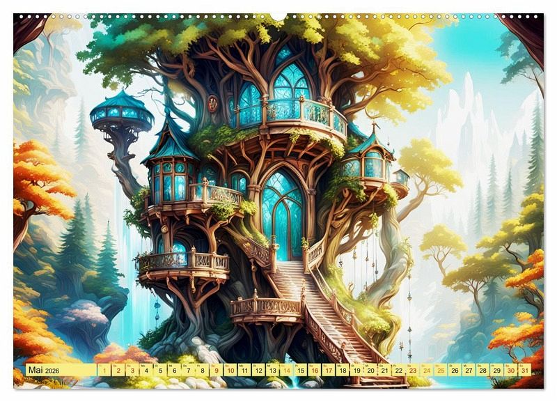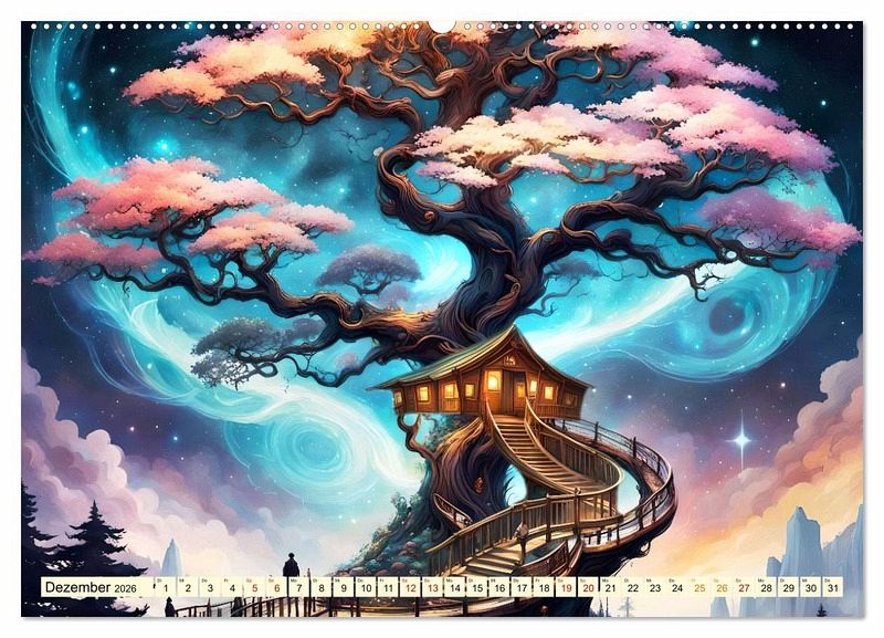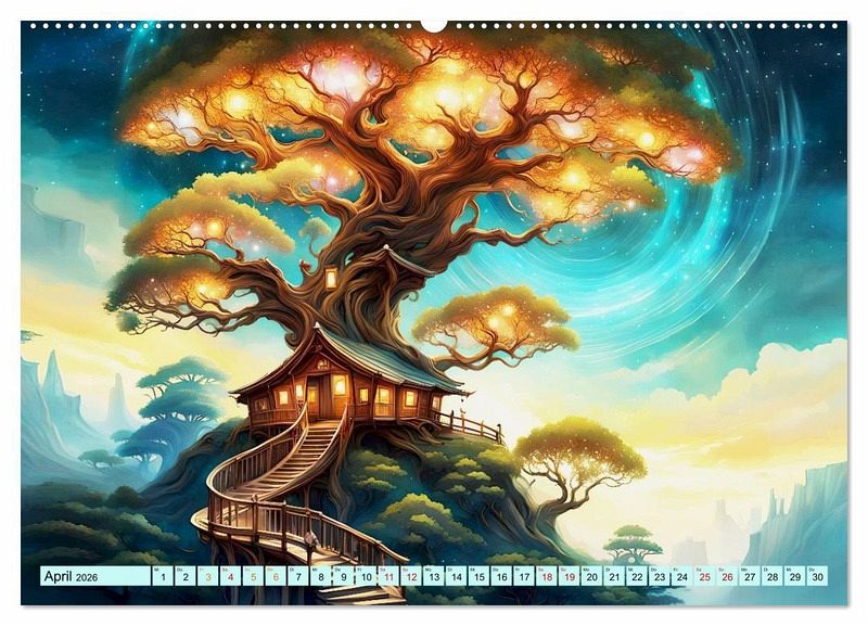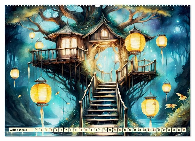 Jeder Monat offenbart eine Baumhausvision aus einer Welt, wo das Wunderbare greifbar scheint und die Natur in perfekter Harmonie mit menschlicher Schöpfungskunst steht. Stellen Sie sich vor, jeden Tag in das gezeichnete Blattwerk voll zauberhafter Details zu blicken und von schwebenden Hütten zu träumen, in denen jeder Gedanke zu einer Reise wird.