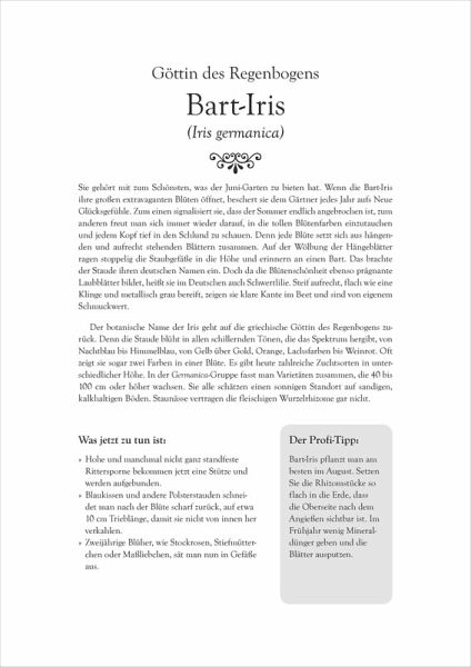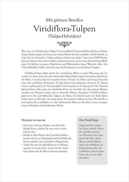 Mit diesem Kalender können Sie keine wichtigen anfallenden Arbeiten mehr verpassen. 53 Fotografien von Pflanzen und Beeten des Gartenfotografen Martin Staffler begleiten durchs Gartenjahr und sind eine Fundgrube und Inspiration für jeden Gartenbesitzer. Die Gartenexpertin Ute Bauer liefert zahlreiche nützliche Tipps und Informationen sowie Anregungen für den richtigen Umgang mit Blumen, Bäumen und Sträuchern. Ihre Pflanzenporträts geben wertvolle Hinweise zu Standort, Pflege, Anzucht oder gelungenen Kombinationsmöglichkeiten. Die handfesten Praxis-Tipps für jede Woche sind ein kompetenter Wegweiser zur Garten- und Pflanzenpflege durch die vier Jahreszeiten.