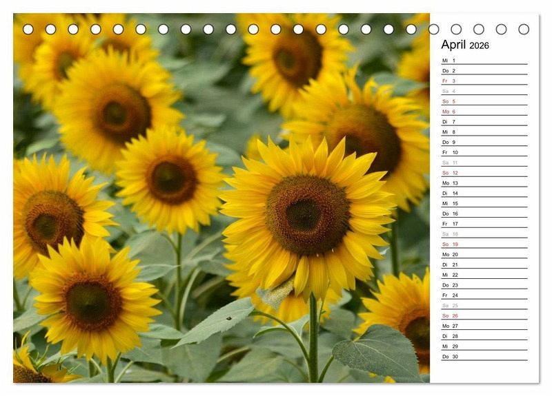 QUALITÄT - Hochwertiger Fotokalender mit 12 wunderschönen Motiven auf lichtbeständigem Bilderdruckpapier, robuste Spiralbindung.NACHHALTIG - deutliche Abfallreduzierung durch bedarfsgerechte Einzelstückfertigung, umweltfreundliches FSC-zertifiziertes Papier, Produktion in Deutschland, klimabewusste Logistik.PERFEKTES GESCHENK - Kalender für Freunde und Familie, für Kinder und Erwachsene, jung und alt, zu Weihnachten, Geburtstag oder zwischendurch.VIELFALT - Bildkalender in verschiedenen Formaten, z.B. DIN A5, DIN A4, DIN A3 sowie DIN A2. Ob Naturmotiv, Gemälde oder Fotos, ideal für ein persönliches Wohlfühlambiente.Frisch fröhliche Sonnenblumen im Bild festgehalten von der Fotografin Anke van Wyk. von Autor(in): Anke van Wyk
