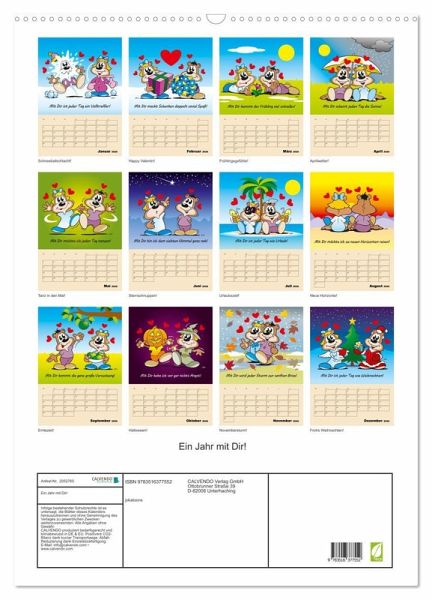QUALITÄT - Hochwertiger Fotokalender mit 12 wunderschönen Motiven auf lichtbeständigem Bilderdruckpapier, robuste Spiralbindung mit Aufhängebügel.NACHHALTIG - deutliche Abfallreduzierung durch bedarfsgerechte Einzelstückfertigung, umweltfreundliches FSC-zertifiziertes Papier, Produktion in Deutschland, klimabewusste Logistik.PERFEKTES GESCHENK - Kalender für Freunde und Familie, für Kinder und Erwachsene, jung und alt, zu Weihnachten, Geburtstag oder zwischendurch.VIELFALT - Bildkalender in verschiedenen Formaten, z.B. DIN A5, DIN A4, DIN A3 sowie DIN A2. Ob Naturmotiv, Gemälde oder Fotos, ideal für ein persönliches Wohlfühlambiente.Begleiter für Verliebte durch das Jahr. von Autor(in): jokatoons