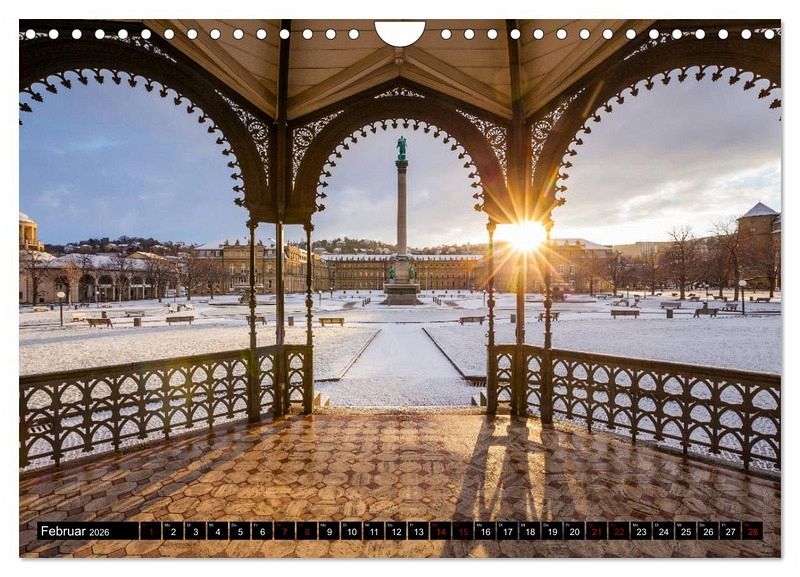 Februar: Neues Schloss und Jubiläumssäule am Schlossplatz