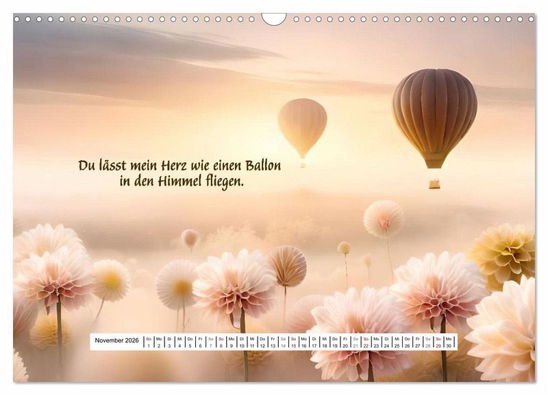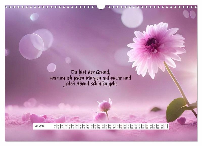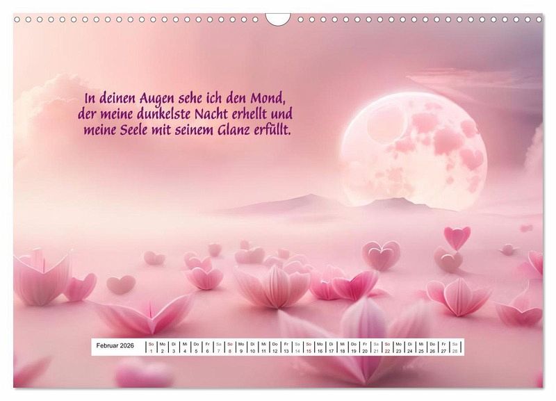 Unser Kalender 'Ein Jahr voller Liebe' bietet Ihnen 12 einzigartige Liebesmomente für jeden Monat des Jahres. Jedes Bild und jeder Liebesspruch wurde mit moderner künstlichen Intelligenz generiert, um Ihnen eine einzigartige Erfahrung zu bieten. Die Bilder sind von hoher Qualität und zeigen Ihnen atemberaubende romantische Szenen, die die Schönheit der Liebe aufzeigen. Die dazugehörigen Liebessprüche sind inspirierend und originell und wurden speziell für diesen Kalender generiert. Jeder Monat eigene bietet Ihnen eine Fülle von Emotionen und romantischen Momenten. Entdecken Sie ein neues Liebesabenteuer mit unserem 'Ein Jahr voller Liebe'-Kalender - ein perfektes Geschenk für jeden, der die Liebe und die Magie des Jahres schätzt!