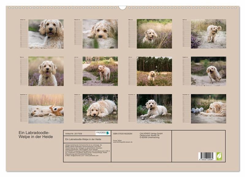 QUALITÄT - Hochwertiger Fotokalender mit 12 wunderschönen Motiven auf lichtbeständigem Bilderdruckpapier, robuste Spiralbindung mit Aufhängebügel.NACHHALTIG - deutliche Abfallreduzierung durch bedarfsgerechte Einzelstückfertigung, umweltfreundliches FSC-zertifiziertes Papier, Produktion in Deutschland, klimabewusste Logistik.PERFEKTES GESCHENK - Kalender für Freunde und Familie, für Kinder und Erwachsene, jung und alt, zu Weihnachten, Geburtstag oder zwischendurch.VIELFALT - Bildkalender in verschiedenen Formaten, z.B. DIN A5, DIN A4, DIN A3 sowie DIN A2. Ob Naturmotiv, Gemälde oder Fotos, ideal für ein persönliches Wohlfühlambiente.Welpenbilder eines süßen Labradoodles beim Spiel und Spaß in der Heide von Autor(in): Sonja Teßen