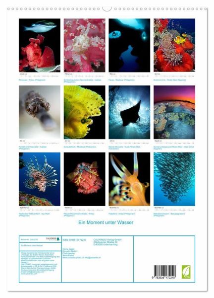 PREMIUM-LINIE - Brillanter Fotokalender mit 12 wunderschönen Motiven, Kunstdruck in Hochglanz in Museumsqualität.QUALITÄT - edle Materialien, stabile Rückwand mit 2 innovativen Einstecktaschen für eine optimale Präsentation an der Wand.NACHHALTIG - deutliche Abfallreduzierung durch bedarfsgerechte Einzelstückfertigung, umweltfreundliches FSC-zertifiziertes Papier, Produktion in Deutschland, klimabewusste Logistik.PERFEKTES GESCHENK - Kalender für Freunde und Familie, für Kinder und Erwachsene, jung und alt, zu Weihnachten, Geburtstag oder zwischendurch.Wunderschöne, skurrile Unterwasserlandschaften und eine spannende Tierwelt warten auf Sie! von Autor(in): Henry Jager