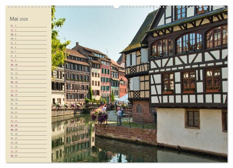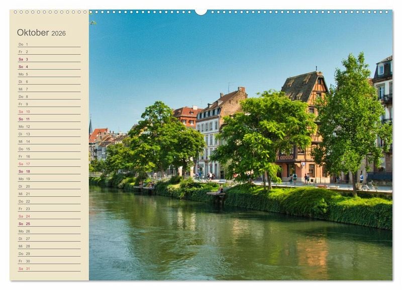 Straßburg an der deutsch-französischen Grenze ist bekannt als Weihnachtsstadt, doch auch im Sommer lohnt sich ein Besuch. Der Kalender erinnert an einen Sommerspaziergang durch die Stadt.