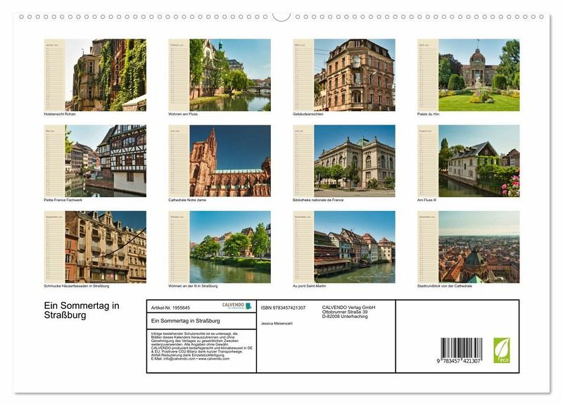 PREMIUM-LINIE - Brillanter Fotokalender mit 12 wunderschönen Motiven, Kunstdruck in Hochglanz in Museumsqualität.QUALITÄT - edle Materialien, stabile Rückwand mit 2 innovativen Einstecktaschen für eine optimale Präsentation an der Wand.NACHHALTIG - deutliche Abfallreduzierung durch bedarfsgerechte Einzelstückfertigung, umweltfreundliches FSC-zertifiziertes Papier, Produktion in Deutschland, klimabewusste Logistik.PERFEKTES GESCHENK - Kalender für Freunde und Familie, für Kinder und Erwachsene, jung und alt, zu Weihnachten, Geburtstag oder zwischendurch.Fotos eines Sommerspaziergangs durch Straßburg von Autor(in): Jessis Fotoecke