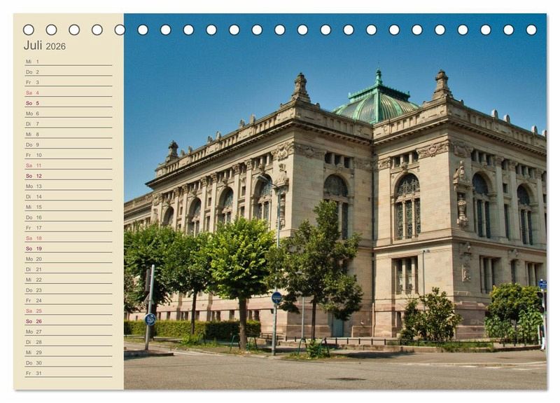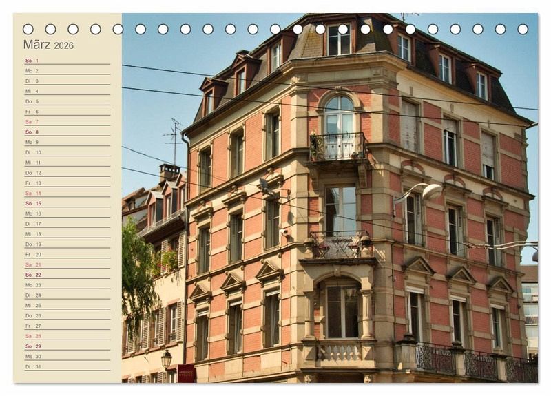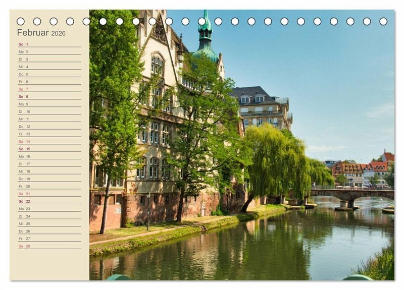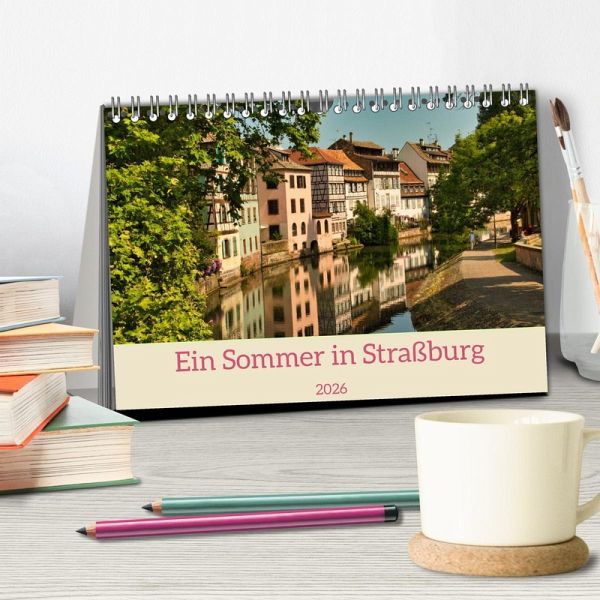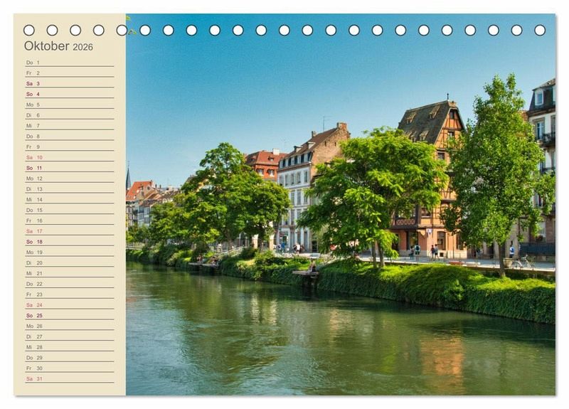 Straßburg an der deutsch-französischen Grenze ist bekannt als Weihnachtsstadt, doch auch im Sommer lohnt sich ein Besuch. Der Kalender erinnert an einen Sommerspaziergang durch die Stadt.