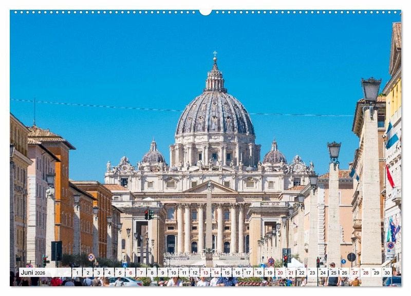 Erleben Sie Rom in all seiner Pracht - Monat für Monat. Dieser Kalender führt Sie zu den beeindruckendsten Orten der italienischen Hauptstadt: Bewundern Sie den majestätischen Petersdom, Herzstück des Vatikans und Meisterwerk der Renaissance. Schlendern Sie gedanklich durch das Forum Romanum, wo Geschichte und Legenden zwischen antiken Säulen lebendig werden. Folgen Sie dem sanften Lauf des Tibers bis zur Engelsburg, deren imposante Silhouette seit Jahrhunderten über die Stadt wacht.