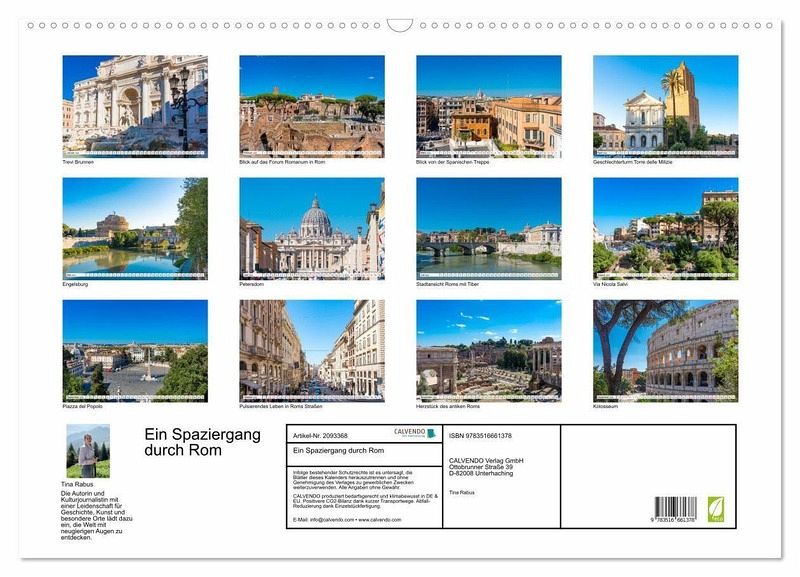 QUALITÄT - Hochwertiger Fotokalender mit 12 wunderschönen Motiven auf lichtbeständigem Bilderdruckpapier, robuste Spiralbindung mit Aufhängebügel.NACHHALTIG - deutliche Abfallreduzierung durch bedarfsgerechte Einzelstückfertigung, umweltfreundliches FSC-zertifiziertes Papier, Produktion in Deutschland, klimabewusste Logistik.PERFEKTES GESCHENK - Kalender für Freunde und Familie, für Kinder und Erwachsene, jung und alt, zu Weihnachten, Geburtstag oder zwischendurch.VIELFALT - Bildkalender in verschiedenen Formaten, z.B. DIN A5, DIN A4, DIN A3 sowie DIN A2. Ob Naturmotiv, Gemälde oder Fotos, ideal für ein persönliches Wohlfühlambiente.Roms Gassen & Plätze entdecken von Autor(in): Tina Rabus