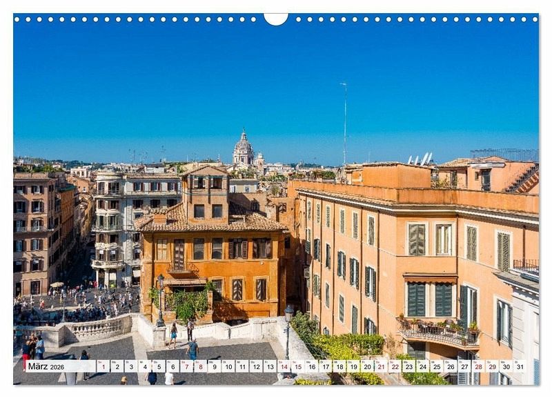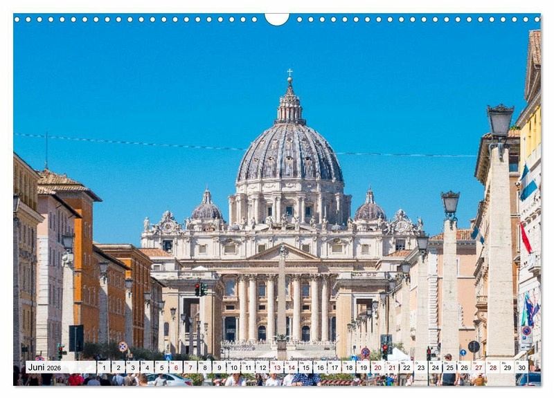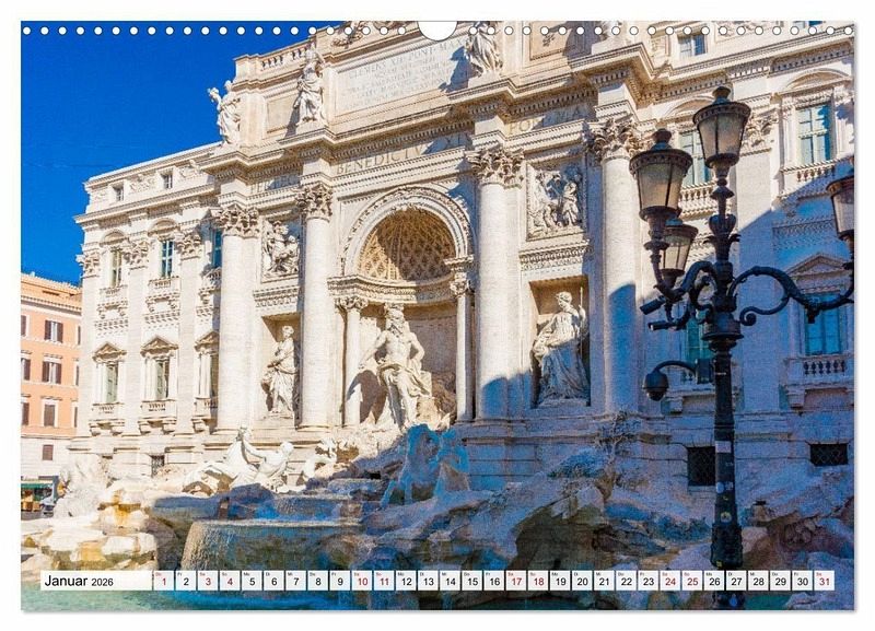 Erleben Sie Rom in all seiner Pracht - Monat für Monat. Dieser Kalender führt Sie zu den beeindruckendsten Orten der italienischen Hauptstadt: Bewundern Sie den majestätischen Petersdom, Herzstück des Vatikans und Meisterwerk der Renaissance. Schlendern Sie gedanklich durch das Forum Romanum, wo Geschichte und Legenden zwischen antiken Säulen lebendig werden. Folgen Sie dem sanften Lauf des Tibers bis zur Engelsburg, deren imposante Silhouette seit Jahrhunderten über die Stadt wacht.