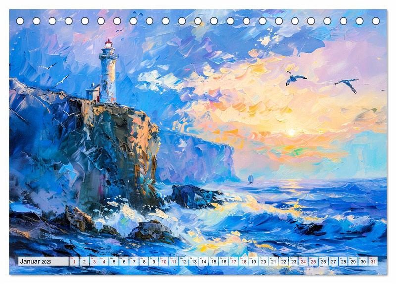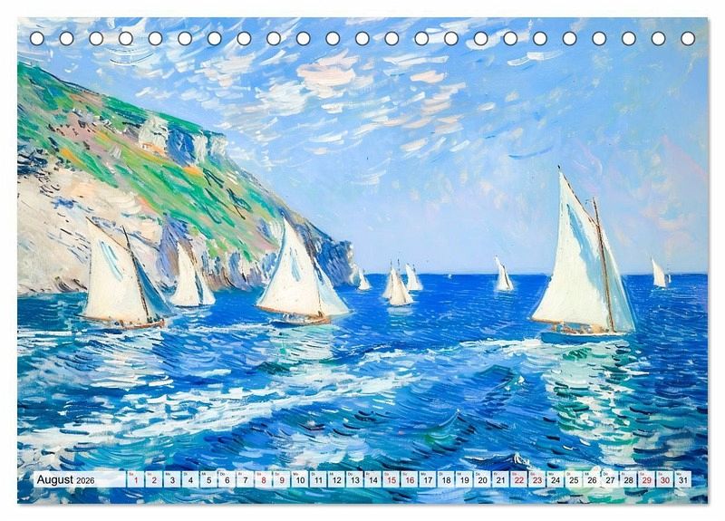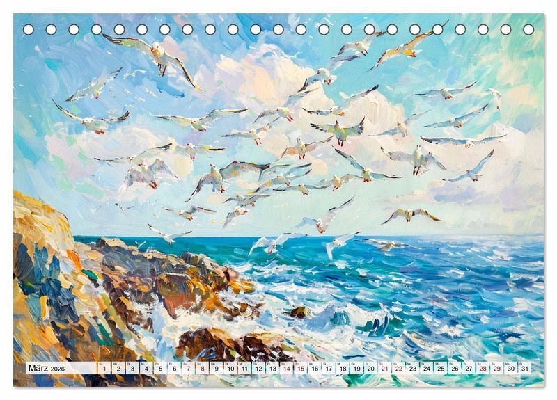 Tauchen Sie ein in die faszinierende Welt des Meeres, eingefangen im impressionistischen Malstil. Dieser kunstvoll KI-generierte Kalender "Ein Tag am Meer - Durch die Augen der Impressionisten" zeigt zwölf stimmungsvolle Szenen voller Licht, Farbe und Bewegung - von sanften Sonnenuntergängen über wilde Klippen bis hin zu idyllischen Strandszenen. Die lebendigen Pinselstriche und harmonischen Farbübergänge lassen die Schönheit der Küste lebendig werden. Perfekt für alle, die sich das ganze Jahr über eine künstlerische Meeresbrise nach Hause holen möchten!