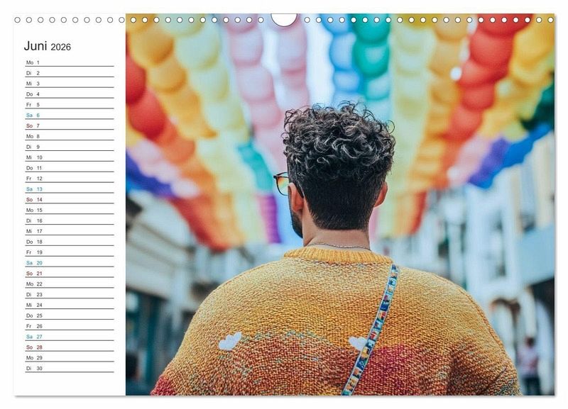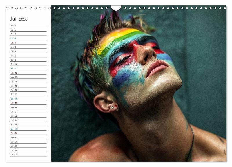 Es ist ein Leben in Farben, voller Lachen, Leidenschaft und tiefer Verbundenheit. Ein Leben, das Vielfalt nicht nur zeigt, sondern lebt. Sei laut. Sei stolz. Sei du. Happy Pride - für ein Leben in voller Farbe. Alle hier gezeigten Bilder wurden mit Sorgfalt, Liebe und mit Hilfe einer KI generiert. Abschließend werden sie mit Bildbearbeitungsprogrammen überarbeitet und in den Kalender eingefügt.