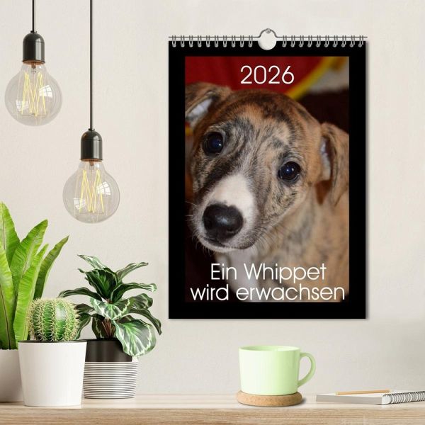 Eevee Moonlight heißt die Kleine, sie ist ein Whippetwelpe, frech und allerliebst! In diesem Kalender begleiten wir sie vom tolpatschigen Welpen bis zum edlen, erwachsenen Hund. Sie werden sich in diese Rasse verlieben!
