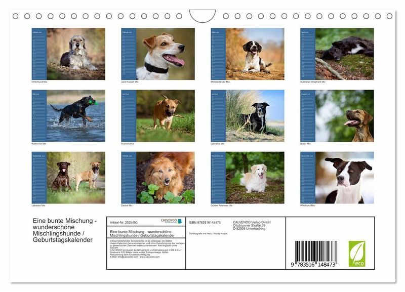 Wir haben 13 liebevoll zusammengestellte Mischlingshunde-Bilder in diesem Kalendarium vereint. Für jeden Hundefreund eine schöne Komposition